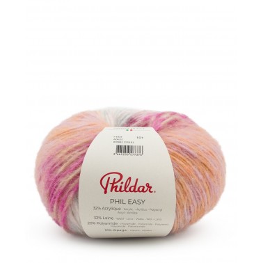 Quick view Fil easy Phildar Azalee Prix 26,00 € Pelotes de 150 grammes, 375 mètres environ. 3 pelotes pour une taille 42 Échantillon 10x10 cm : 12 mailles x 18 rangs – Aiguilles n°7 32%...