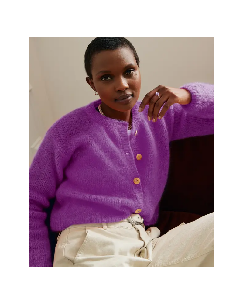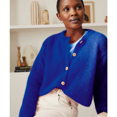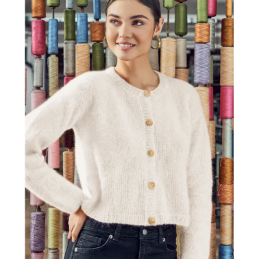 On en mangerait ! Croquez avec gourmandise et sans modération les points jersey et régalez-vous à créer facilement ce gilet incroyablement doux et moelleux dans le fil noble mousseux gonflant et léger avec kidmohair et laine PHIL CHIC