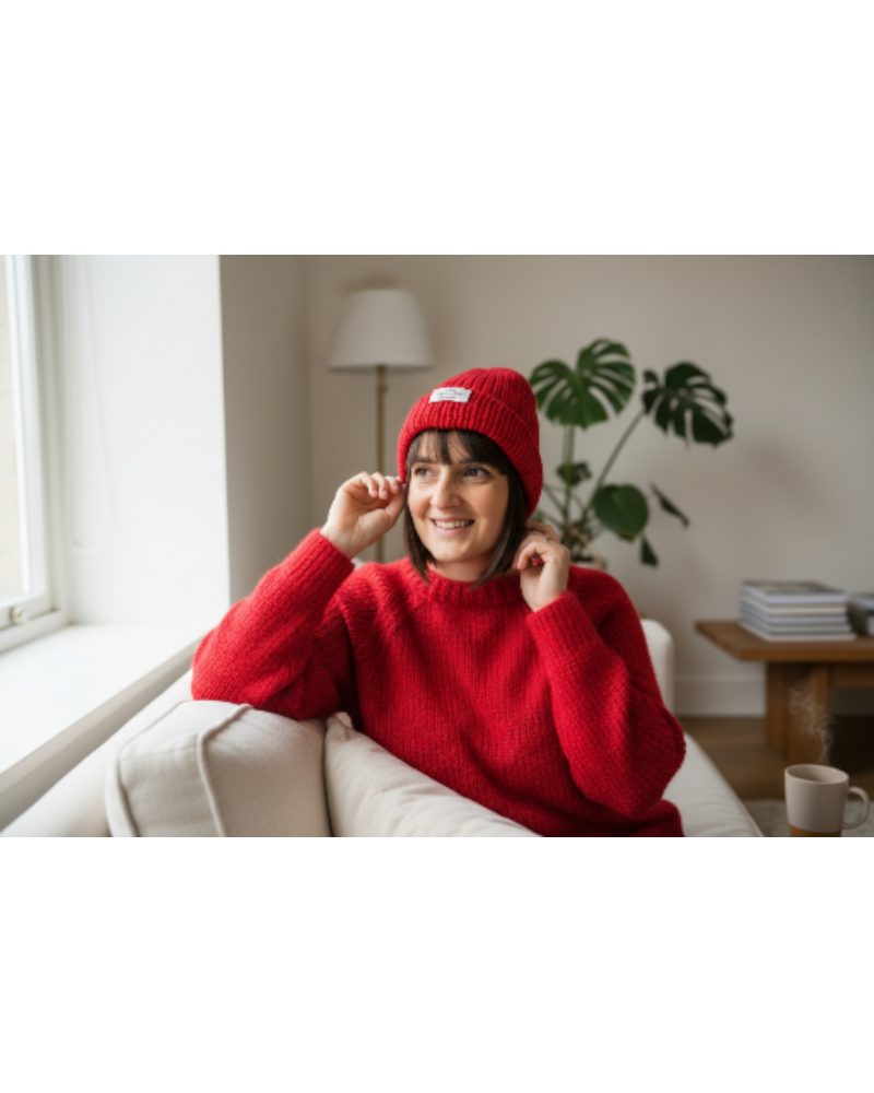 Bonnet fait main en laine mohair et laine - Fabrication française Rouge