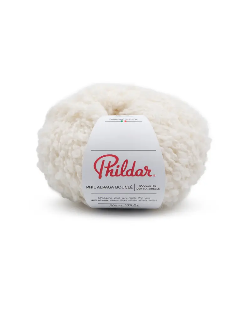 Phil Alpaga Bouclé est un fil composé à 100% de fibres naturelles. Ce fil premium, au toucher exceptionnel et à l’aspect bouclé unique, offre un confort incomparable. Moelleux, doux et légèrement duveteux, il est parfait pour tricoter des pièces cocooning et élégantes, idéales pour la mi-saison et l’hiver.