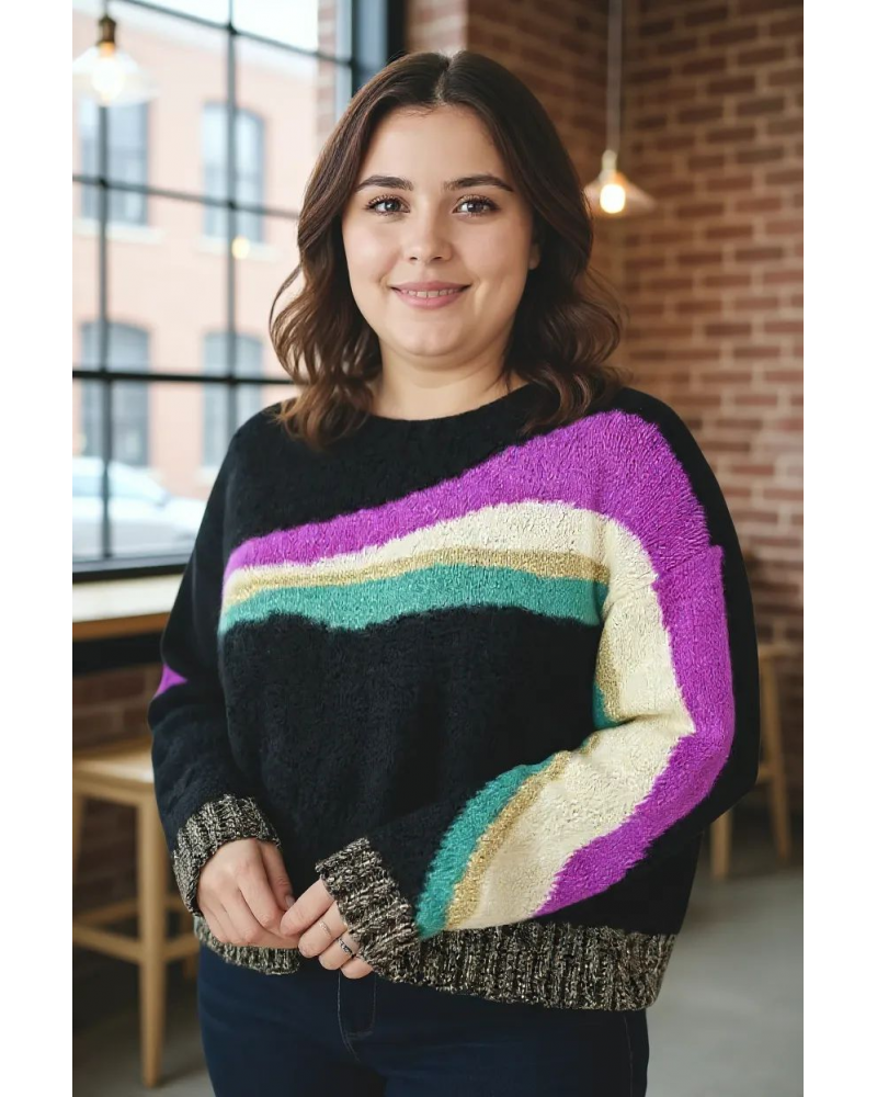 Le style graphique embarque vos aiguilles dans la tendance de cet automne-hiver sur ce modèle de pull motifs jacquard à tricoter dans le fil noble mousseux gonflant et léger avec kidmohair et laine PHIL CHIC.