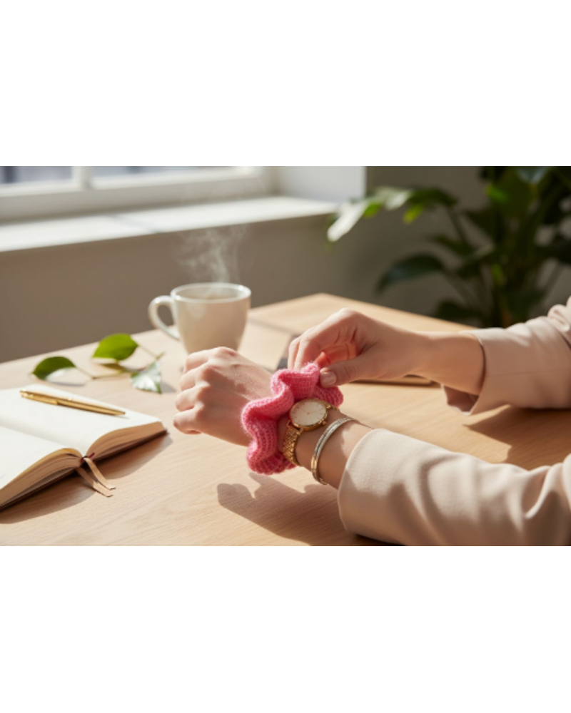 Un chouchou d’exception, tricoté main en mohair français pour sublimer chaque coiffure.