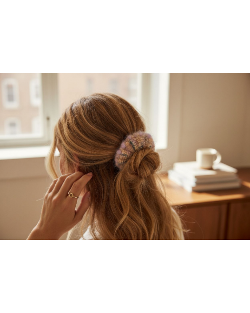 Un chouchou d’exception, tricoté main en mohair français pour sublimer chaque coiffure.