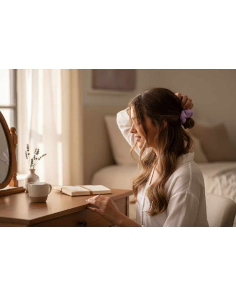 Chaque chouchou est le fruit d’un travail artisanal minutieux signé Maison Louise et Alice. Sa texture vaporeuse et délicatement duveteuse apporte une touche élégante à toutes les coiffures, qu’il s’agisse d’un chignon bas, d’une queue-de-cheval ou simplement porté au poignet comme accessoire mode.