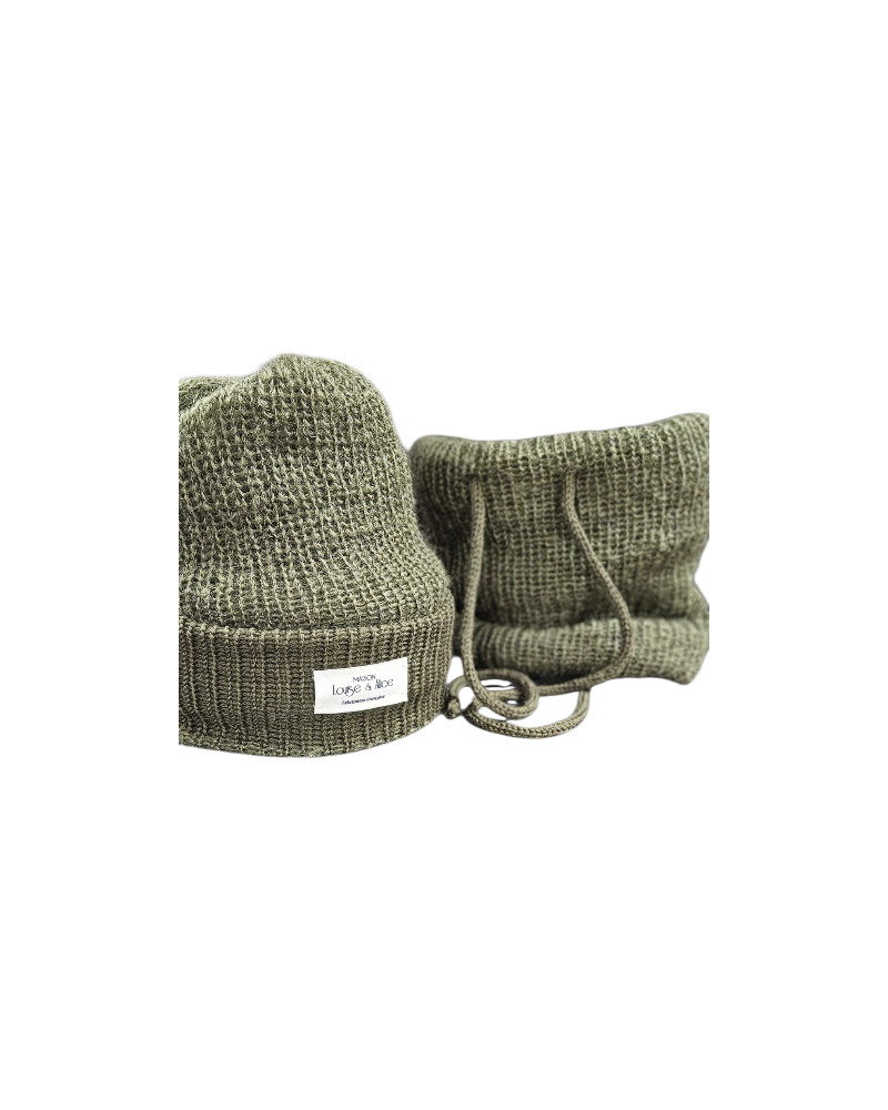 Bonnet fait main en laine mohair et laine - Fabrication française kaki