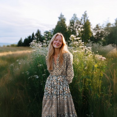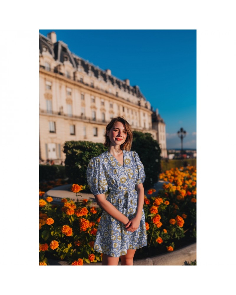 tissu Block print fleur coton
