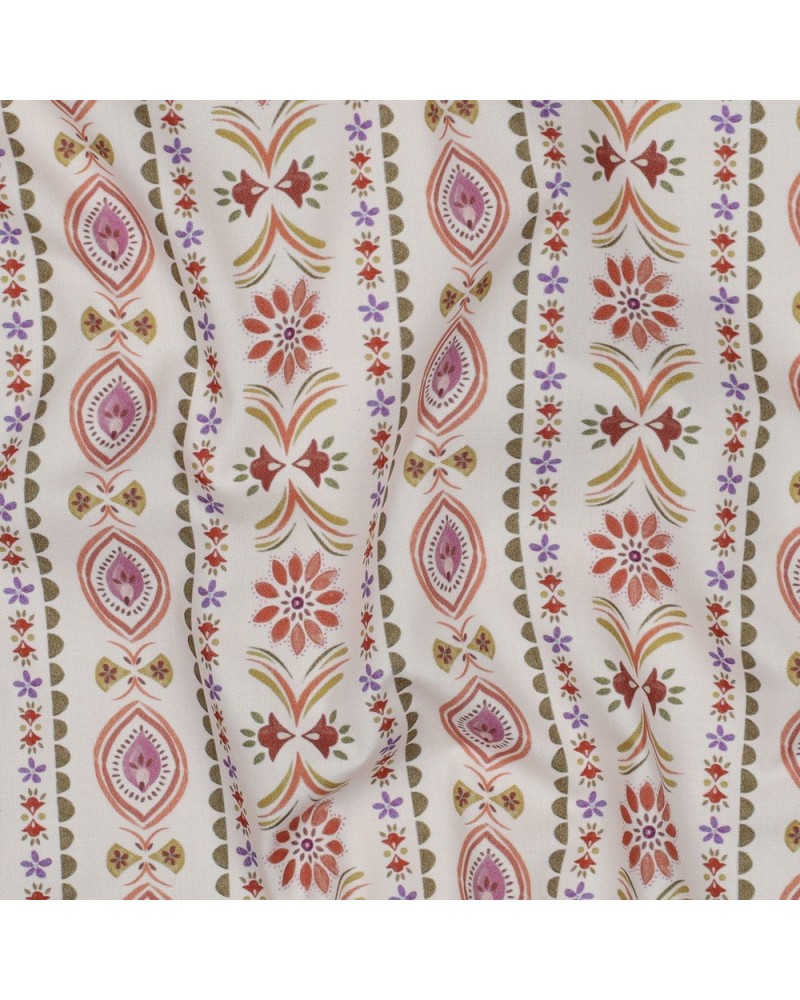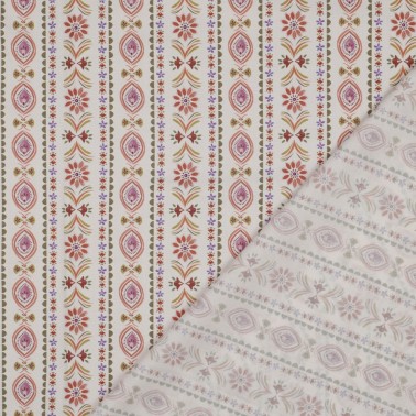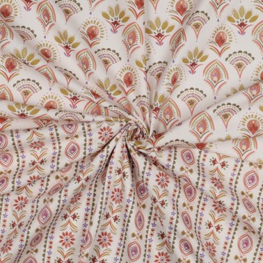 POPELINE DE COTON TISSAGE FIN DIGITAL FLEURS - BLANC CASSÉ